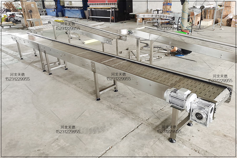 鏈板輸送機(jī)歡迎來(lái)電定制河北天德雞胸肉油炸流水線鏈板輸送機(jī):15231229955 網(wǎng)址:http://www.jiliyinji.com/