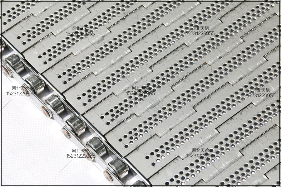 這款鏈板輸送帶采用不銹鋼304鋼板折彎沖孔完成的,所有尺寸都是根據(jù)客戶的的要求來生產(chǎn)加工的。