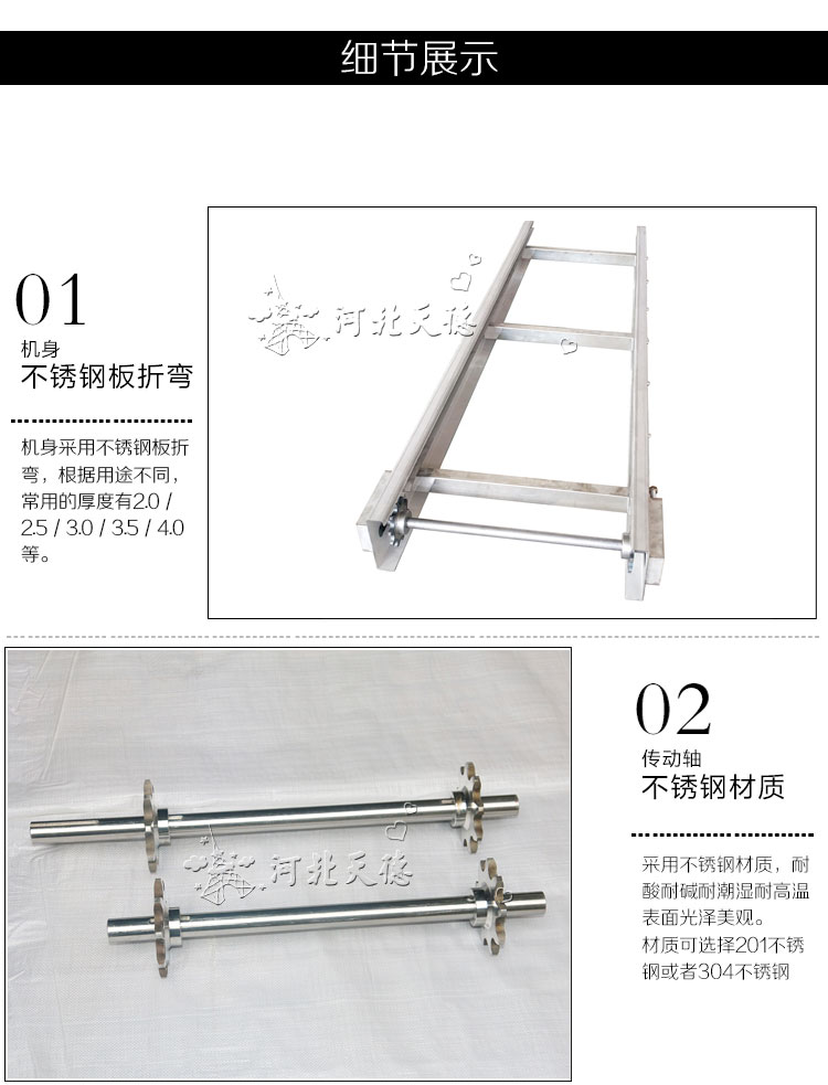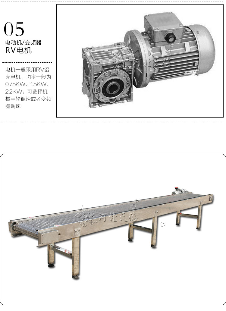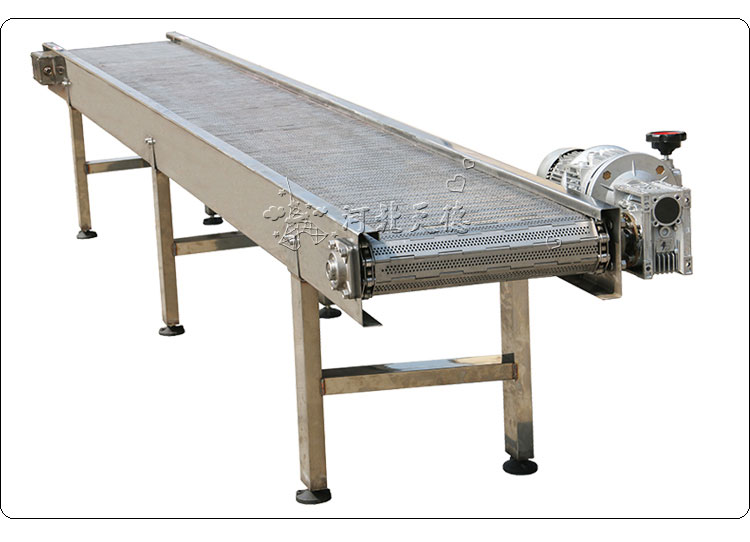 不銹鋼鏈板輸送機(jī):采用金屬鏈板網(wǎng)帶作為輸送載體。驅(qū)動(dòng)方式:減速電機(jī)驅(qū)動(dòng)。