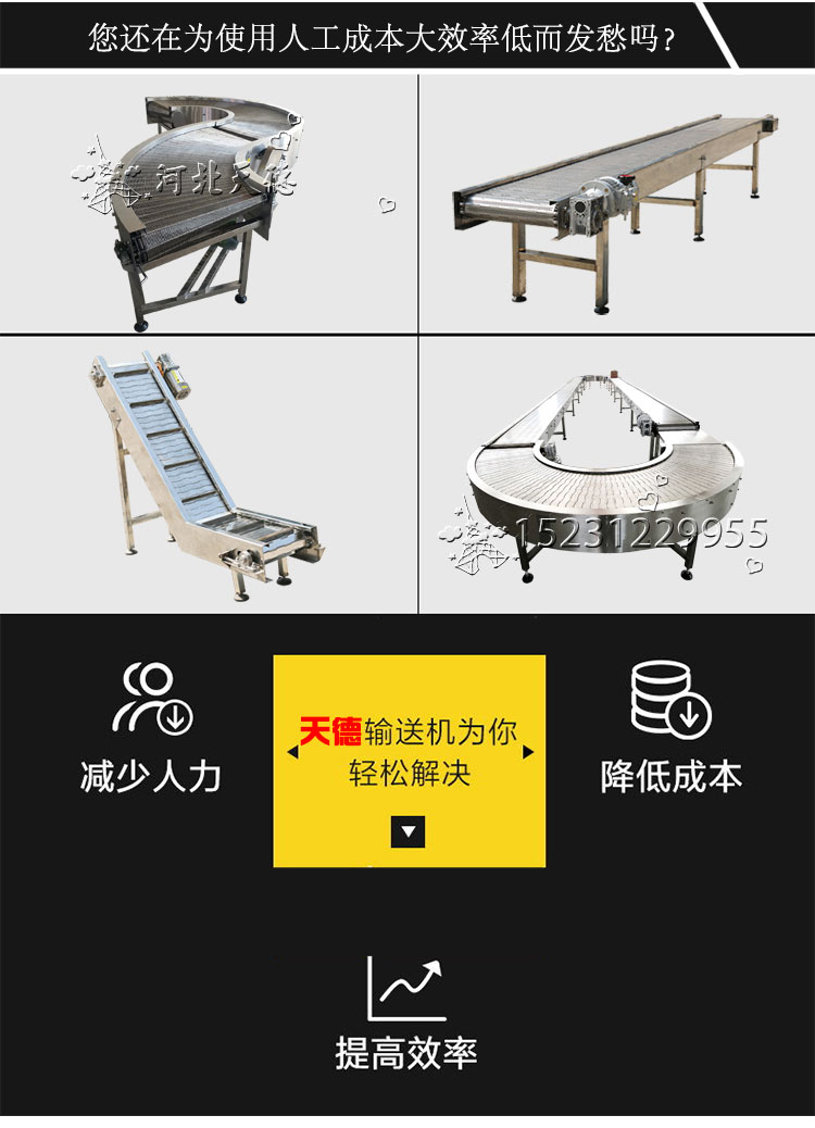 1.鏈板輸送機(jī)的輸送面平坦光滑,摩擦力小,物料在輸送線之間的過(guò)渡平穩(wěn),可輸送各類(lèi)玻璃瓶、PET瓶、易拉罐等物料,也可輸送各類(lèi)箱包。